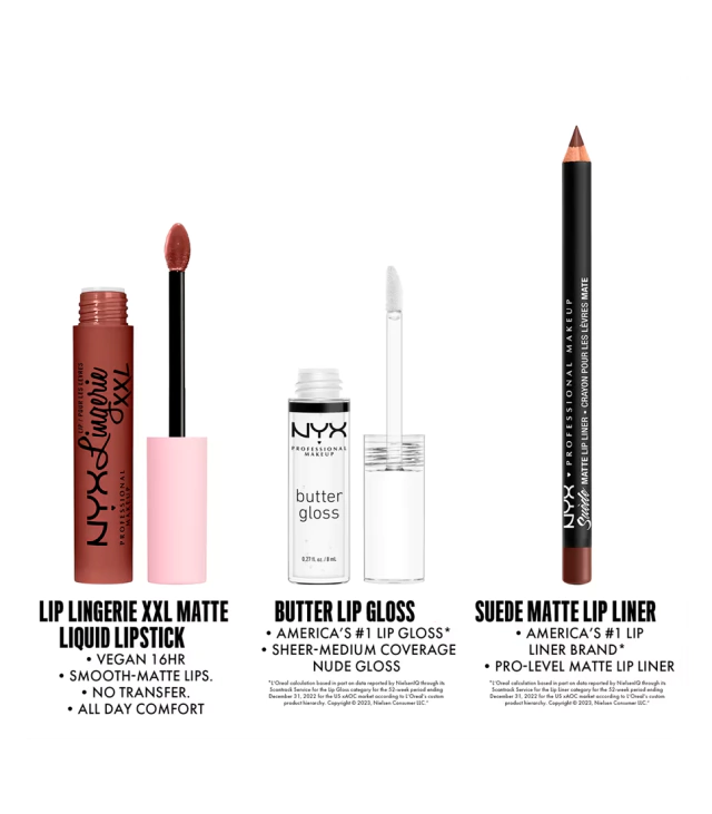 El kit de labios definitivo para cualquier ocasión. El NYX Lip Kit lo tiene todo: fórmulas cremosas, brillantes y suaves para crear el look perfecto en cualquier momento. ¿Buscas un mate de alta cobertura? ¡Listo! ¿Un efecto natural? ¡También! Este set de 3 piezas incluye: