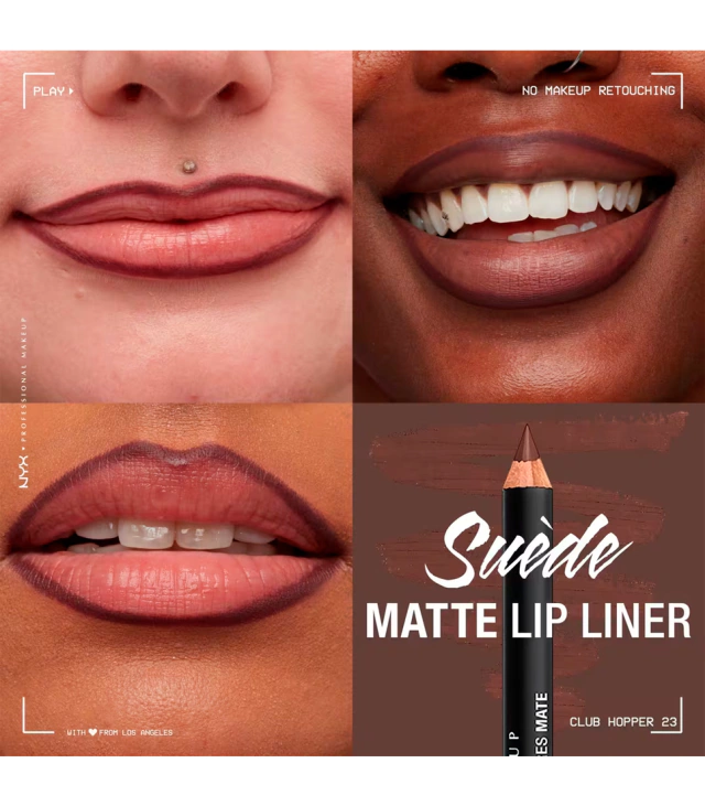 - Suede Matte Lip Liner: Un delineador mate suave que define y realza el contorno de tus labios.
