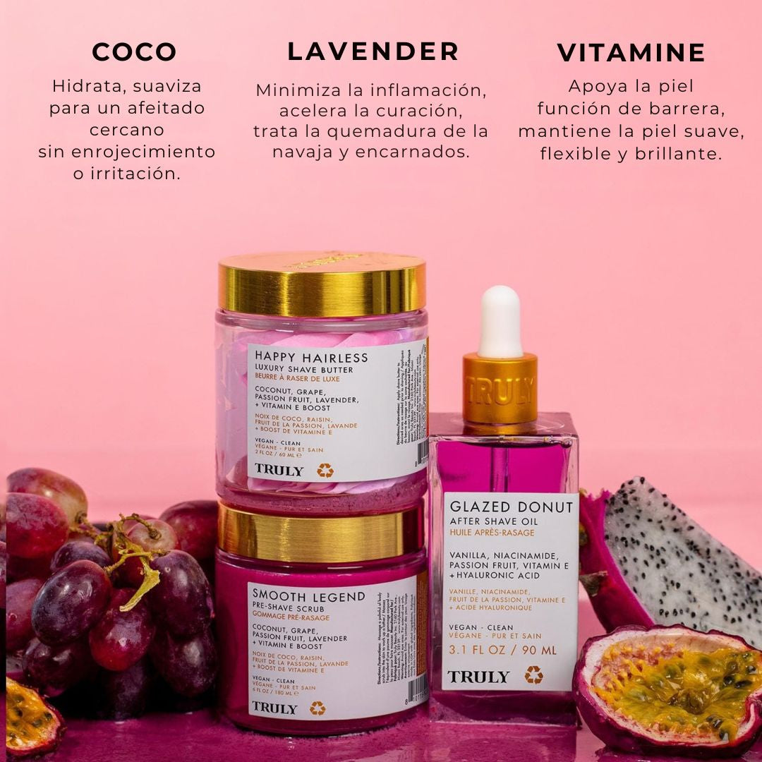 Olvida todo lo que sabes sobre el afeitado convencional. El set Smooth Legend de Truly ha sido creado para transformar una tarea diaria en un momento de pura indulgencia. Este exclusivo kit no solo elimina el vello; perfecciona la textura de tu piel, dejándola increíblemente luminosa, hidratada y libre de irritaciones.